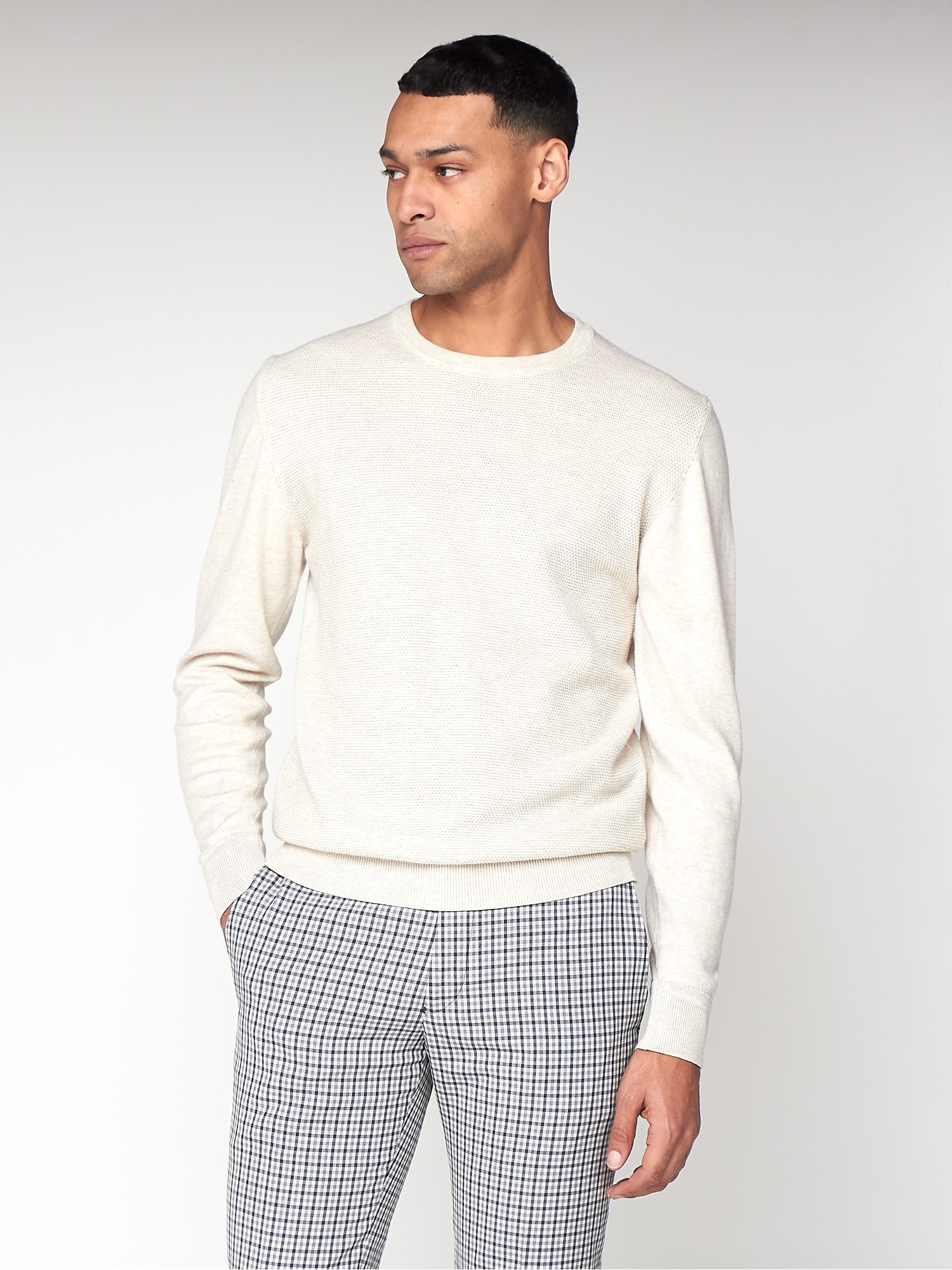 Wool blend all over pique texture crew neck jumper.