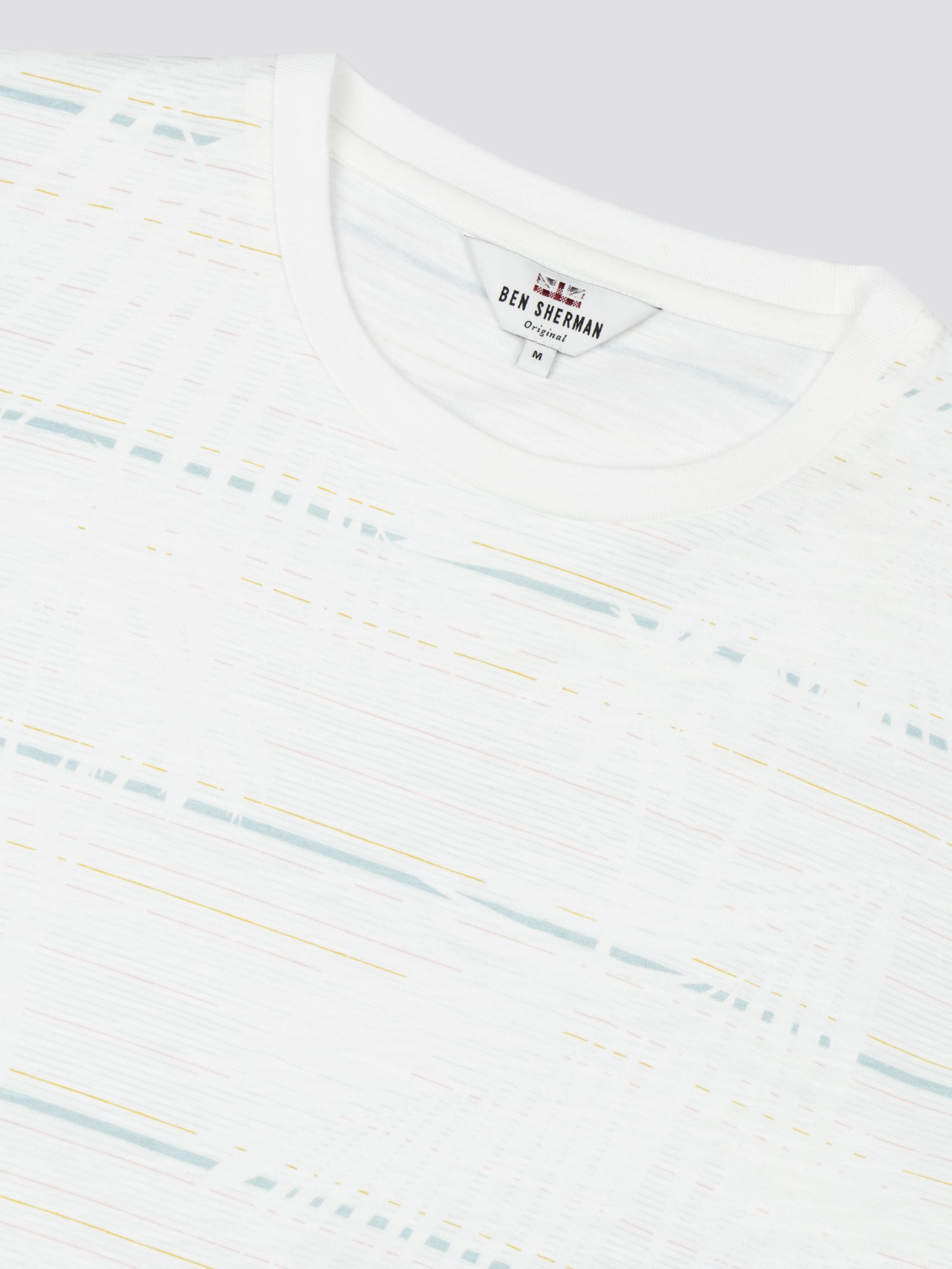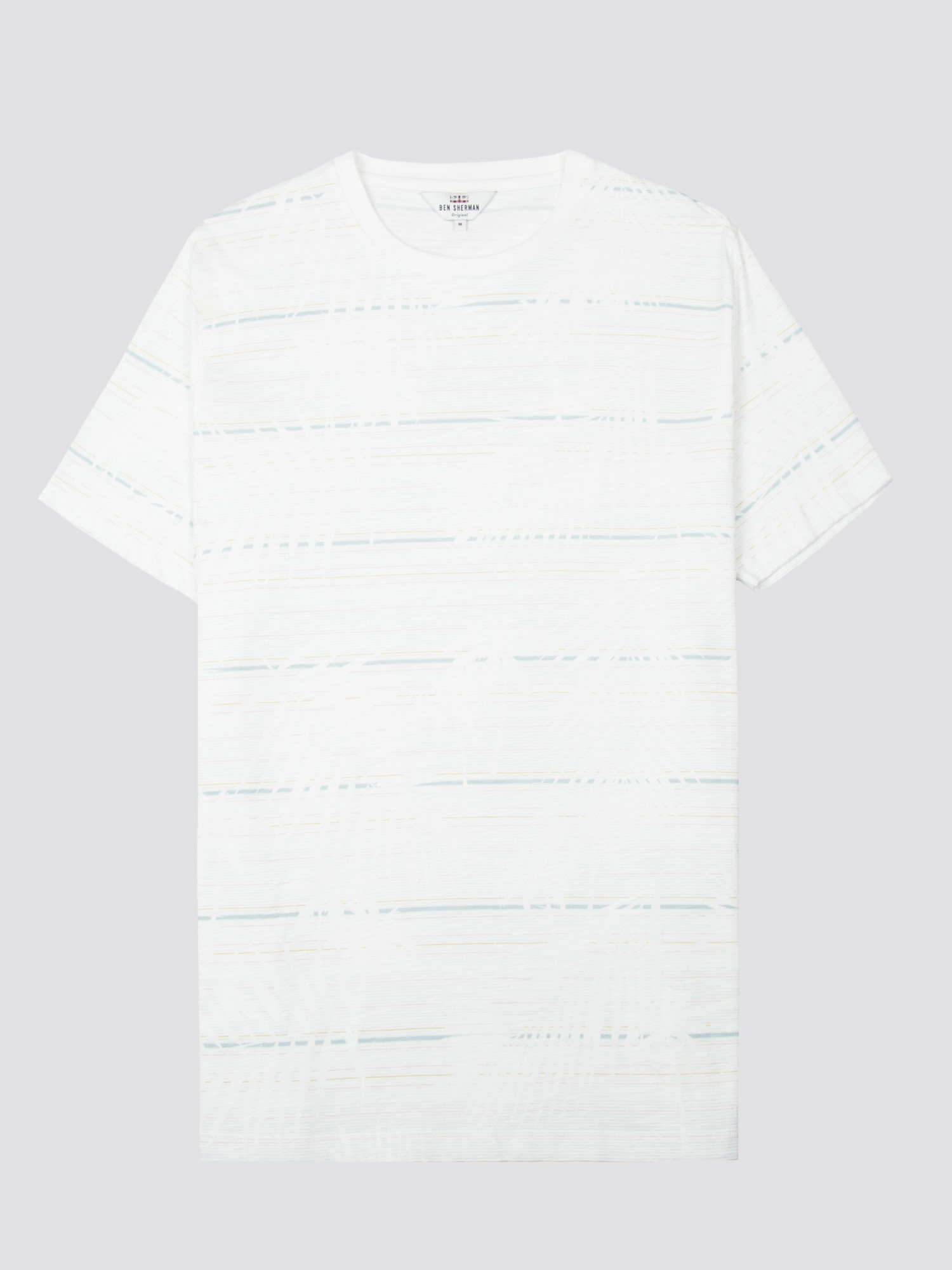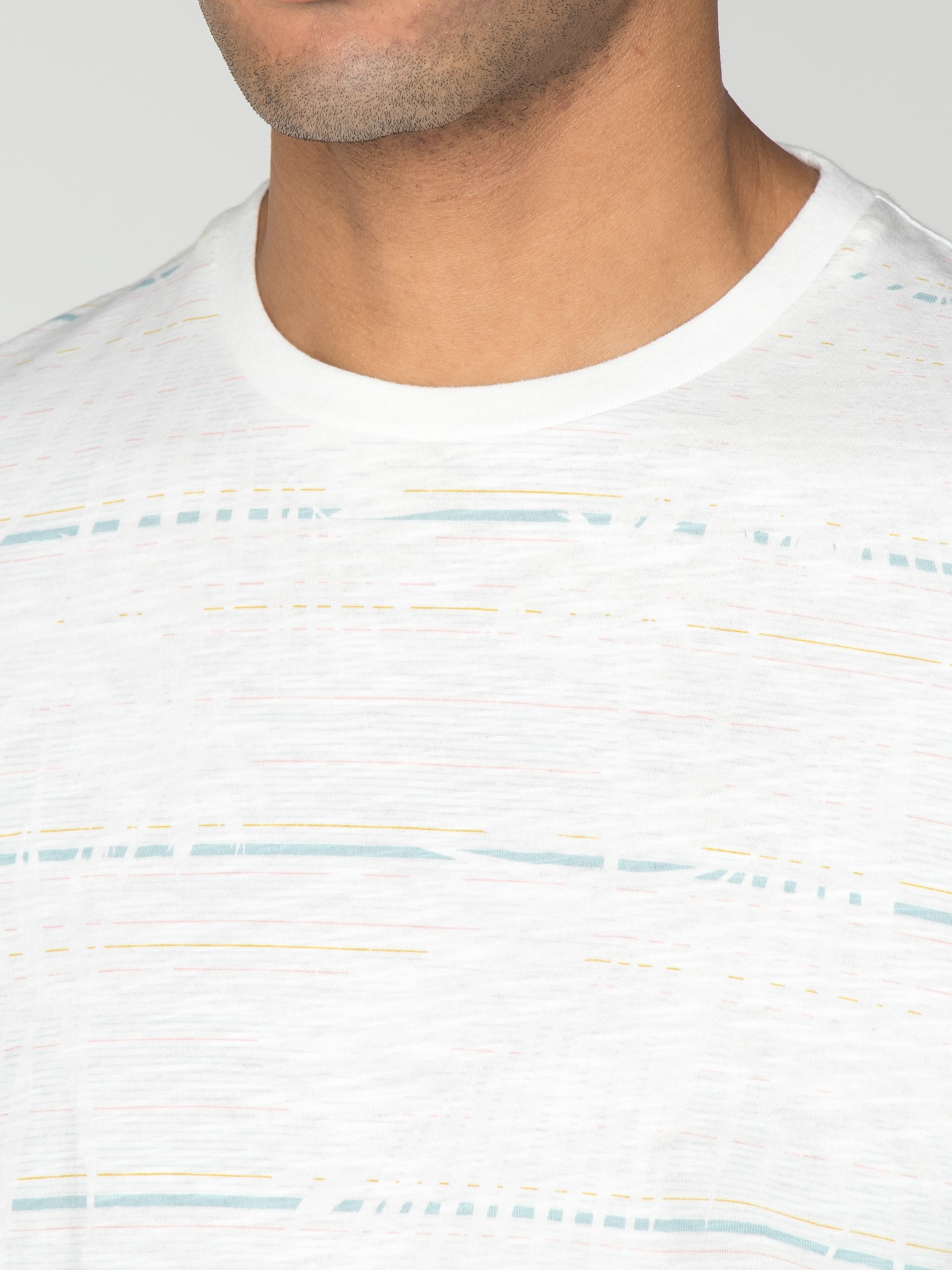 Slub jersey striped t-shirt with a waterbased palm leaf all over print.